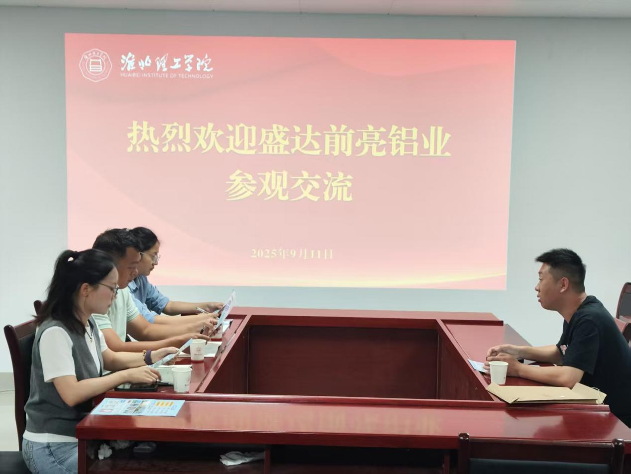 为进一步促进与企业协同发展,实现人才培养与企业需求的精准对接,2025年9月11日上午,安徽盛达前亮铝业有限公司代表郜经理走进开云kaiyun体育开云kaiyun体育,双方围绕实习合作、人才培养等方面展开深入交流,学院教师周大鹏博士、院党总支书记助理邓金鑫、就业小组成员张鹏和方天亲参与交流。