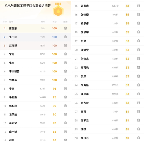 竞赛内容涵盖了征信金融的基础知识、征信体系的建设与应用、金融风险防范等方面。通过线上答题的方式,让学生从被动吸收到主动学习,在玩与学中收获征信金融知识、扫除征信知识盲区。