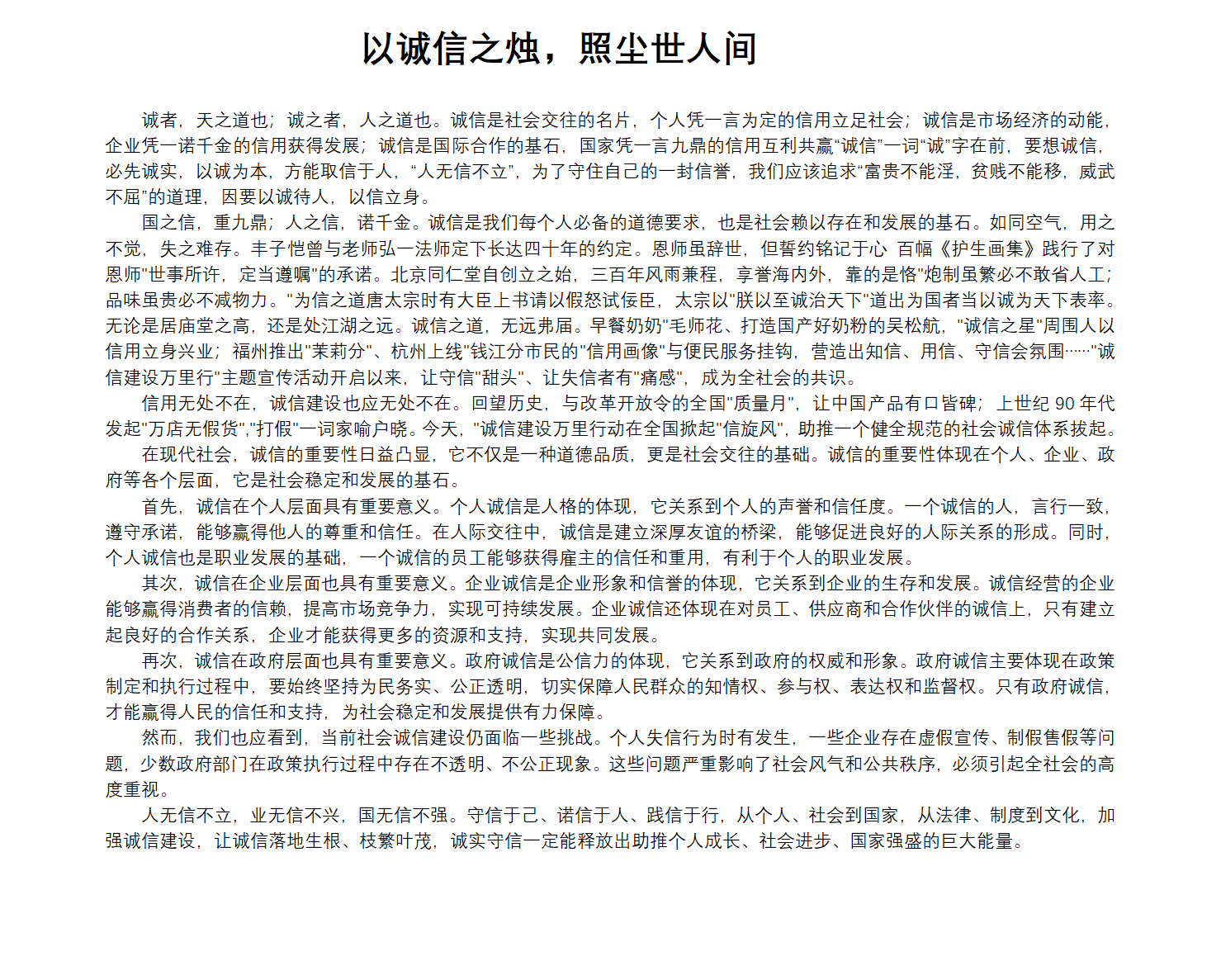 诚信是做人的基石,是国家建设的重要保障。为弘扬社会主义核心价值观,加强学生的诚信教育,提高学生的道德素质,开云kaiyun体育于4月2日至4月16日开展“诚以为本,信以立身” 主题作品创作活动。