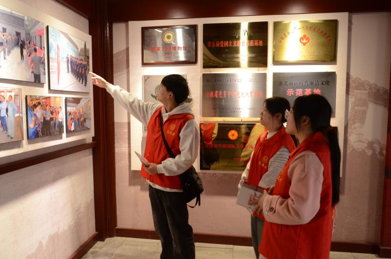 随后志愿者前往淮海战役总前委旧址开展红色教育。通过历史文献展室、总前委领导旧居、战役指挥场景复原区等核心展区,观摩行军地图、支前小推车等珍贵文物,重温”人民群众用小车推出胜利”的壮阔历史,泛黄电报、斑驳武器等实物史料,生动展现了革命先辈听党指挥、依靠群众的斗争精神。通过观看战役不同阶段的图文信息,志愿者们深刻感受到革命先烈“听党指挥、依靠人民、团结协同、决战决胜”的精神内核。