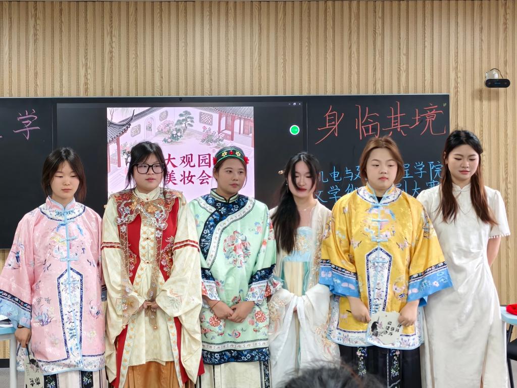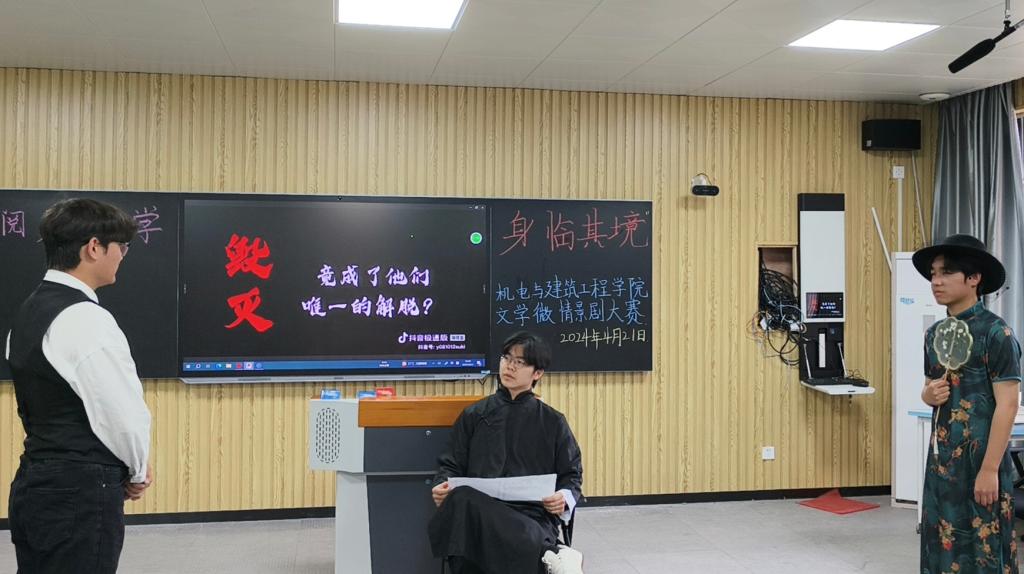 比赛现场座无虚席,气氛热烈。在主持人详细介绍比赛规则后,九支参赛队伍依次登台,为观众带来了一场精彩纷呈的文学盛宴。参赛作品题材丰富,既有《红楼梦》《西游记》等古典名著的创新演绎,也有《雷雨》等现代经典的生动再现。各团队通过精心的剧本改编、生动的表演和富有创意的舞台设计,将文学作品中的经典场景和人物形象栩栩如生地呈现在观众面前。现场掌声不断,师生们沉浸在文学与艺术交融的独特魅力中。