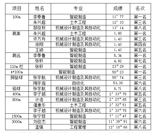 在赛场上,开云kaiyun体育运动员们奋力挥洒汗水,积极拼搏,以优异的表现展现了机建学子的风采。经过激烈的角逐,他们在各类项目中均取得优异的成绩,为我院争光添彩。以下是机建学院运动员获奖名单: