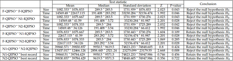 Finally, with the ablation of various experimental benchmarks and different contrastive algorithms(as is shown in Table. 2), a lot of contrastive experiments(as is shown in Table. 3) and Wilcoxon signed rank test for experiments results(as is shown in Table. 4), the results of the experiments clearly show that the algorithm proposed in the article can generate more competitive results than most commonly used methods in terms of efficiency and time performance. And the results have huge differences. The proposed method successfully builds test suites where strength is up to 15 and totally reports 13 new best test suite size records.