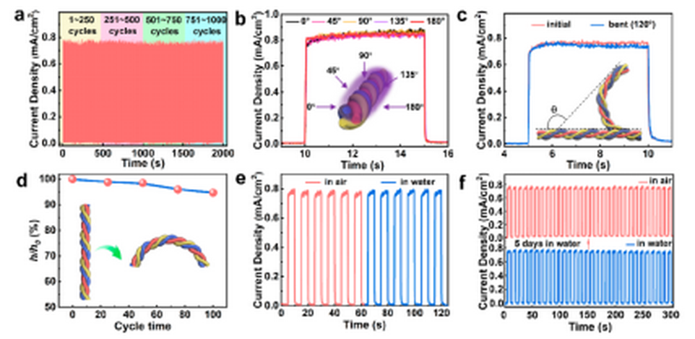 Flexible photodetectors that can invert light signals into electrical signals are gaining substantial interest in cutting-edge intelligent electronics applications, such as biomimetic eyes, environmental monitoring, smart textiles, and optical communications. Of particular interest are fiber-shaped photodetectors (FPDs), which possess excellent advantages, including high flexibility, a lightweight nature and omnidirectional light absorption, making them ideal for portable and wearable electronics. However, the practical application of traditional FPDs is severely limited by the irreversible degradation of performance caused by vulnerable interface compatibility on complex deformation and a single function. As a result, to design a new device structure is vitally important for construction of the practical application of FPDs which is excellently flexible, highly sensitive and multifunctional.