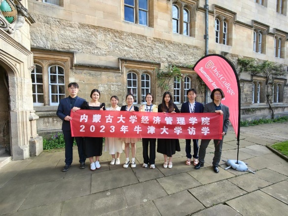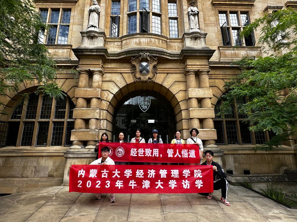 In order to cultivate the talents that meets the needs of economic globalization, boost the improvement of quality and efficiency in the cultivation of undergraduate students and advance the building of the candidate first-class undergraduate programs, the School of Economics and Management(SEM) of IMU signed an MOU with Oriel College of Oxford University in 2020 and reached an agreement on the courses in summer holiday for undergraduate students of SEM. In 2023, after making an implementation plan which was filed to IMU authorities, publicity and mobilization, organization of registration, initial selection and English interview by Oxford University, determination of selected students and education of students before going to Oxford, 9 students were financially supported by SEM to go to Oxford for overseas studies to advance the disciplinary development and international exchange and broaden the international horizon of the students.