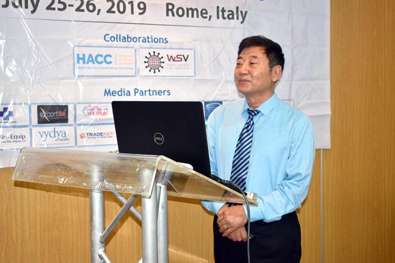 Professor Alatangaole presents reports at the fifth International Conference on Oncology and Research (Oncology-2019) held in Rome from July 25 to 29. [Photo/imu.edu.cn]