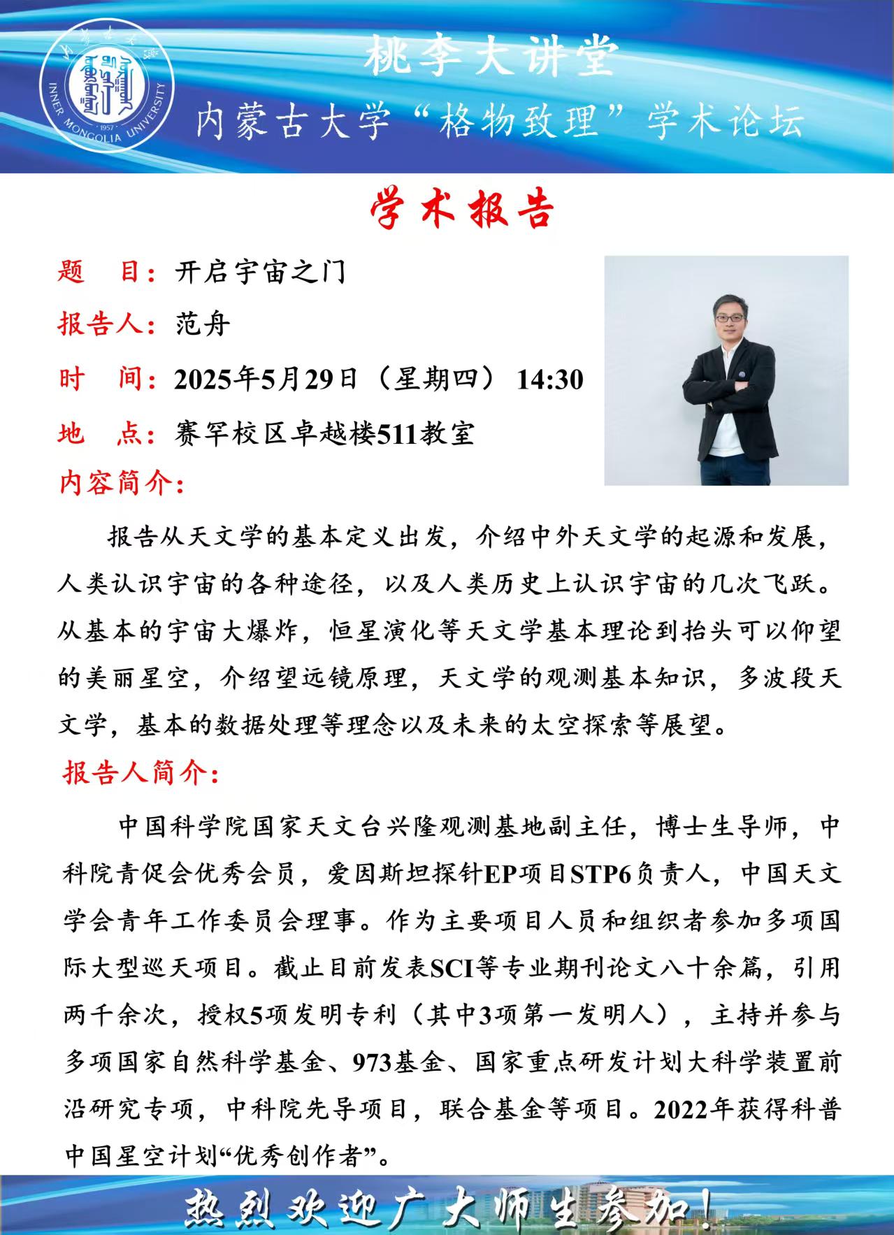 讲座预告 | 开启宇宙之门
